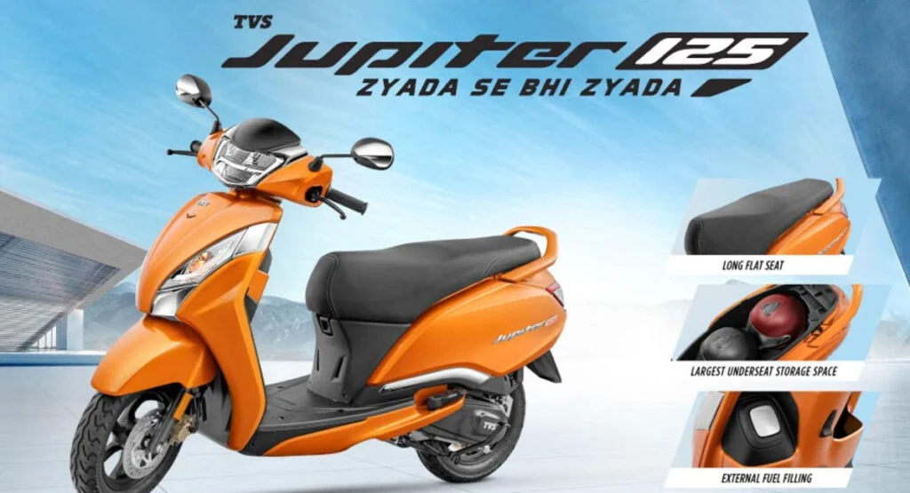 TVS Jupiter 125: टीवीएस कंपनी ने शुरूआत से ही अपनी धाकड़ बाइक्स और स्कूटरों के साथ ग्राहकों के बिच काफी लोकप्रिय है। इसी लोकप्रियता को बरकरार रखने के लिए कंपनी ने अपने एक स्कूटर TVS Jupiter 125, को मार्केट में पेश किया गया है। जिसे लोगो द्वारा बेहद पसंद किया जा रहा है। आइये जानते है Scooter के फीचर्स और माइलेज के बारे में पूरी जानकारी।